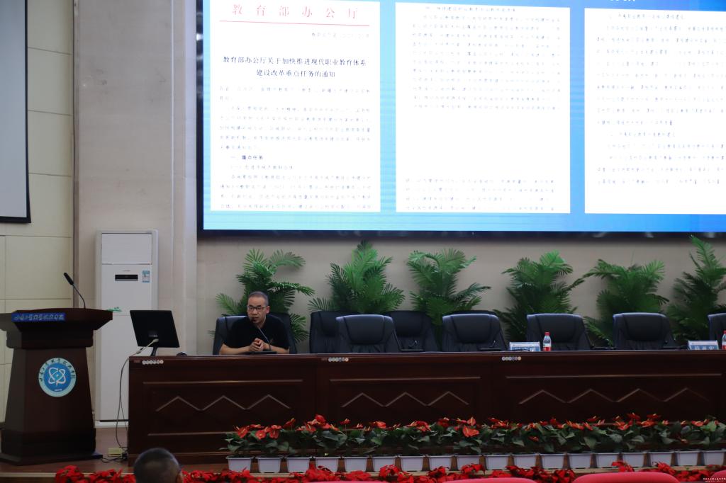 9月1日下午,学校举办职业教育专业教学资源库建设专题讲座暨2023年秋季学期集体教研活动。智慧树研发团队人员为我校教师进行《职业教育专业教学资源库建设指南》政策解读及职业教育新形态专业教学资源库建设方案介绍。