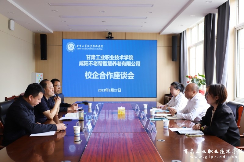 9月27日上午,邀请咸阳不老帮智慧养老有限公司董事长、总经理王烨一行3人参加了校企合作座谈会。