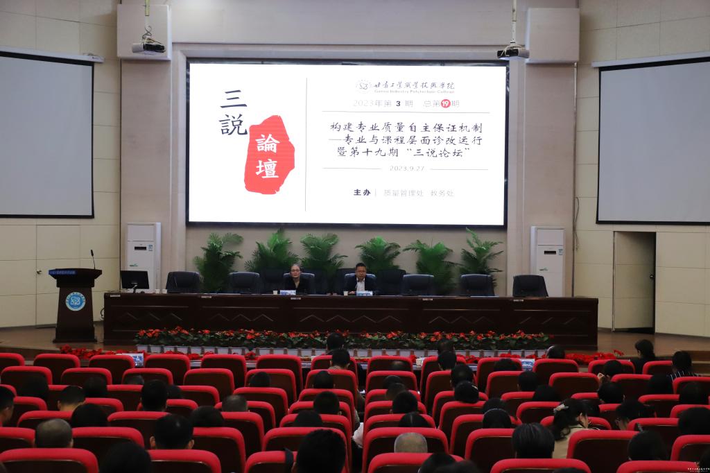 为更好的发挥职业院校的教育质量保证主体作用,不断完善内部质量保证制度体系和运行机制,激发内生动力,促进高素质技术技能人才培养质量的持续提升,9月27日下午,学校在图书馆智敏报告厅举办第十九期“三说”论坛。副院长王利军出席,各部门负责人,全体任课教师参会。