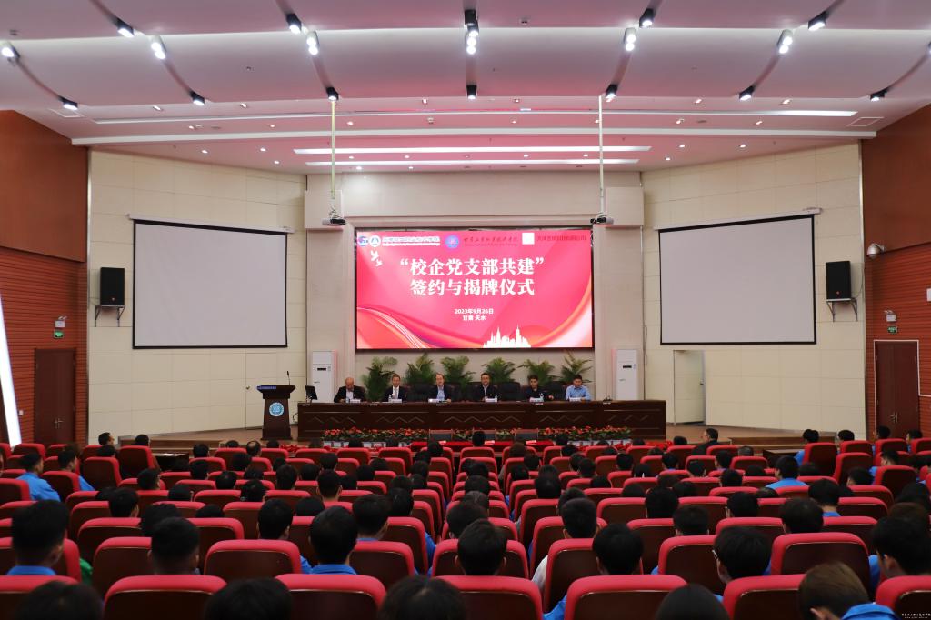 为进一步提高人才培养质量,加强跨区合作,经过天津轻工职业技术学院、甘肃工业职业技术学院、天津圣纳科技有限公司三方充分协商,9月27日下午,在我校隆重举行“校企党支部共建”战略合作框架协议签约仪式和“党支部共建基地”揭牌仪式,拉开三方开展合作的序幕。