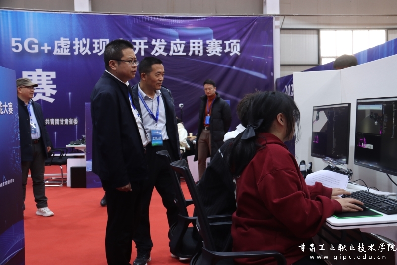 虚拟现实产品设计师S(5G+虚拟现实开发应用)赛项由甘肃省工信厅、甘肃省人力资源和社会保障厅、甘肃省教育厅、甘肃省总工会和中国共产主义青年团甘肃省委员会联合主办,甘肃工业职业技术学院承办。比赛有来自全省各院校和行业企业的10支参赛队参加。