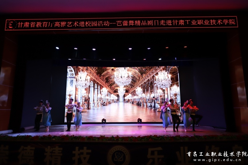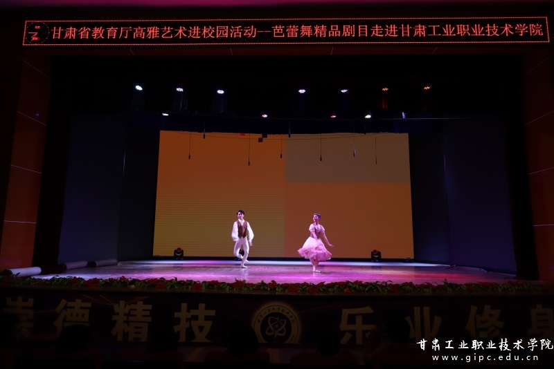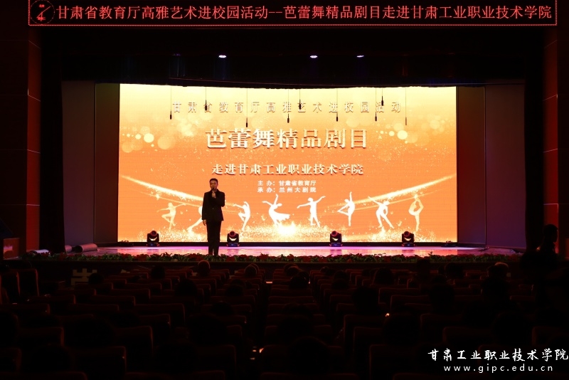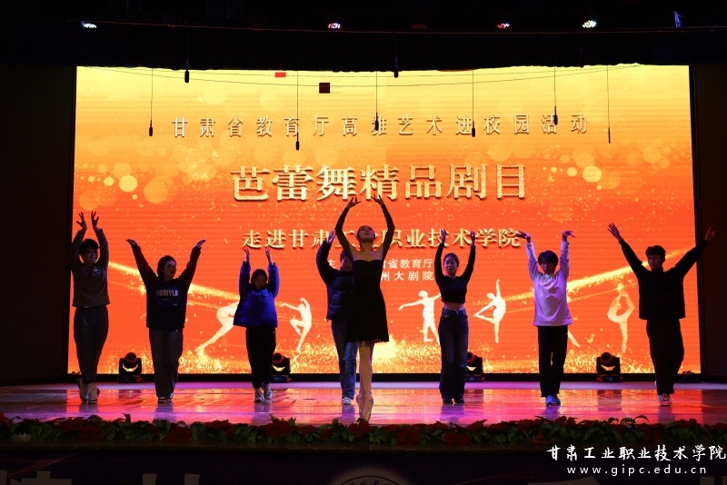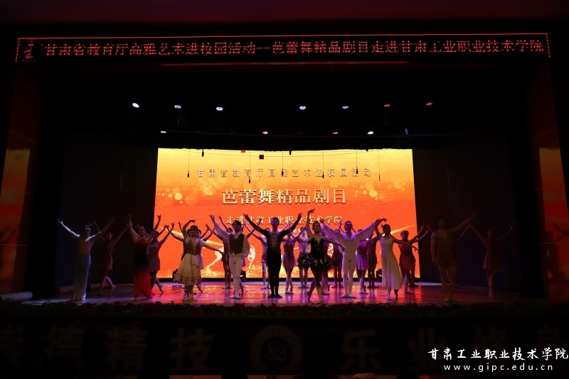 为贯彻落实高校思想政治工作相关要求,把高雅艺术进校园活动作为学校文明校园建设的重要载体,切实提高学生人文素养,11月21日,由甘肃省教育厅主办、兰州大剧院承办的2023年甘肃省教育厅高雅艺术进校园活动——芭蕾舞精品剧目走进甘肃工业职业技术学院在大学生活动中心上演。学校师生代表700余人共同观看了演出。