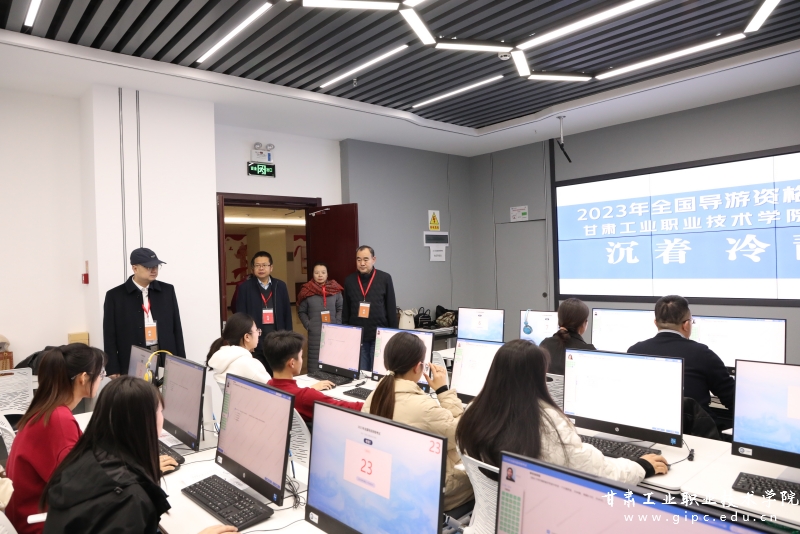 11月25日上午,2023年全国导游资格证考试在甘肃工业职业技术学院考站如期顺利举行。甘肃省文旅厅二级巡视员袁清俊,天水市文化和旅游局培训中心主任王浩瑜,副院长王利军及旅游学院负责人等对考站进行全程巡视。本次考试共有469名考生参加,设11个考场。考试由机考知识题与现场口试两部分组成。
