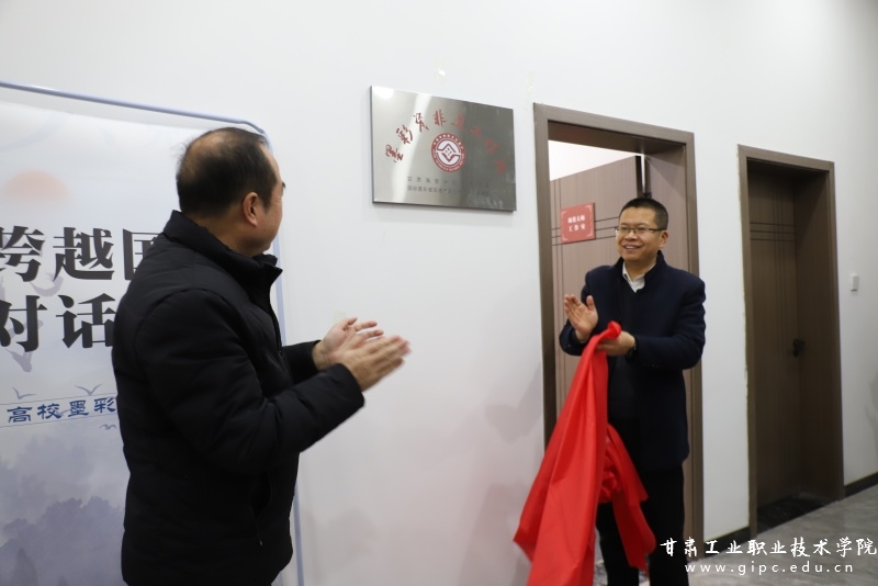 12月20日上午,甘肃工业职业技术学院海智计划示范项目“墨彩瓷非遗工作站”在学校彩陶园三楼揭牌。副院长王利军出席揭牌仪式,甘肃省科协交流中心同志与学校科技处、艺术学院负责人及师生等一行齐聚彩陶园颉蓉大师工作室,共同见证了这标志性的时刻。