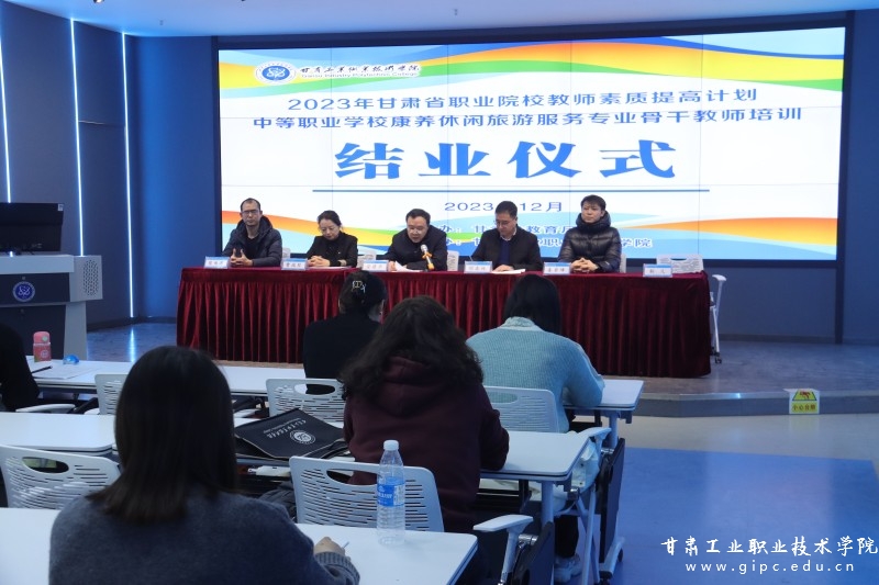 12月25日下午,由甘肃省教育厅主办、甘肃工业职业技术学院承办的2023年中等职业学校康养休闲旅游服务专业国家级骨干教师培训班顺利结业。校党委副书记、院长安建平出席结业式并致辞,旅游学院、继续教育学院负责人及来自全省各中职院校旅游服务与管理专业青年骨干教师50余人参加。结业仪式由副院长胡森林主持。