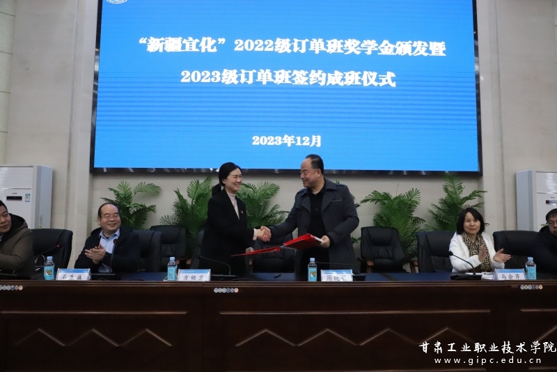 方娅兰对获奖同学表示真心的祝贺,同时介绍了新疆宜化化工有限公司的产业优势、员工发展、薪酬待遇、职业生涯规划等,希望在订单班的基础上创新合作模式、拓展合作渠道,进一步加深与学校的合作。