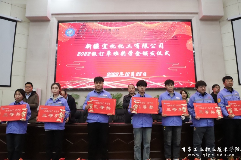 新疆宜化化工有限公司招聘经理马会芹公布了奖学金获奖名单,并由校企双方领导为获奖同学颁奖。化工2231班高玉婵作为获奖学生代表发言,感谢学校和新疆宜化化工有限公司提供的平台和学习工作的机会,表示在今后的学习工作中,一定更加努力,以优异的成绩回馈社会。