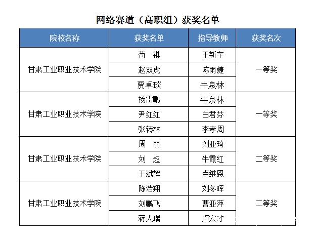 电信学院学生苟祺、赵双虎、贾卓琰团队与杨雷鹏、尹红红 、张转林团队荣获网络赛道(高职组)一等奖;周丽、刘超、王斌辉团队与陈浩翔、刘鹏飞、蒋大瑞团队荣获网络赛道(高职组)二等奖。