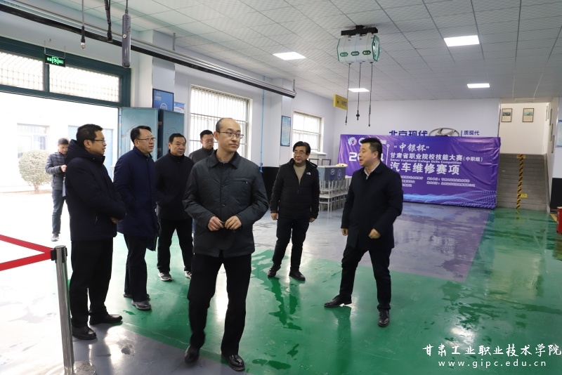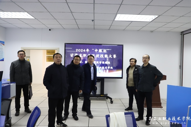 1月11日上午,省教育厅职成处二级调研员胡晶一行来我校检查指导2024年“中银杯”甘肃省职业院校技能大赛工作,大赛监督员兼仲裁长、兰州现代职业学院党委委员姜旗,校党委副书记、院长安建平,副院长王利军及相关部门负责人陪同。