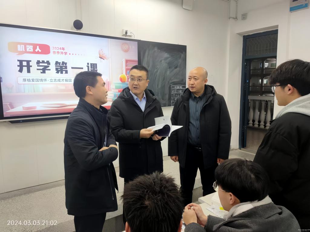 坚葆林来到机器人2331班教室,勉励同学们树立大局意识、纪律意识,心怀集体、爱校荣校;叮嘱同学们增强安全意识,自觉遵守学校各项管理制度,共同构筑校园安全防线;鼓励同学们端正学习态度,认真对待每一门课程,养成良好的学习习惯,掌握扎实的专业知识,不断提升专业技术技能和自身素养。