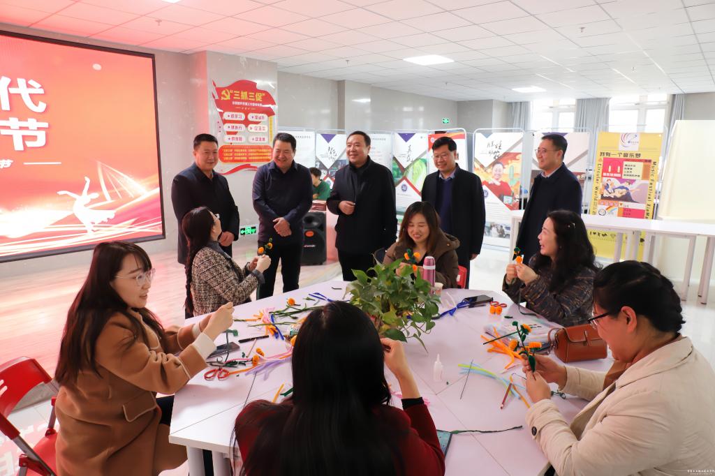 校党委副书记、院长安建平,党委副书记刘乃君,副院长胡森林、曹惠清,纪委书记贾昌麟莅临活动现场,与参加活动老师互动交流,并祝所有女教职工节日快乐,祝大家生活幸福、工作顺利,并对老师的作品给与了评价。