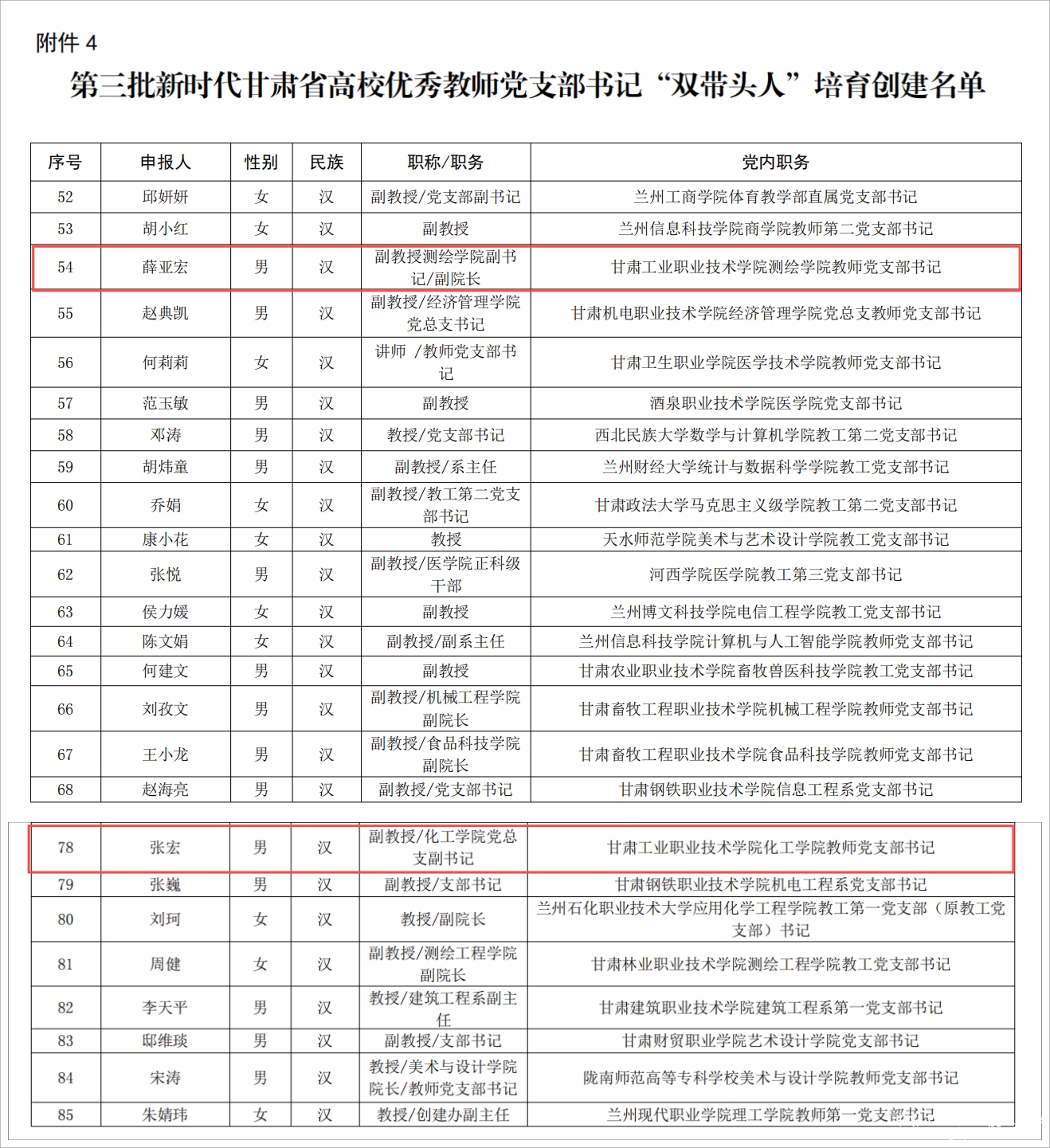 近日,根据省委教育工委公布的第三批新时代甘肃省大中小学党建“对标争先”创建单位名单的通知,我校电子信息学院党总支(原电信学院党总支)获批甘肃省高校党建“标杆院系”,测绘学院教师党支部书记薛亚宏、化工学院教师党支部书记张宏2名同志获评甘肃省高校优秀教师党支部书记“双带头人”称号。