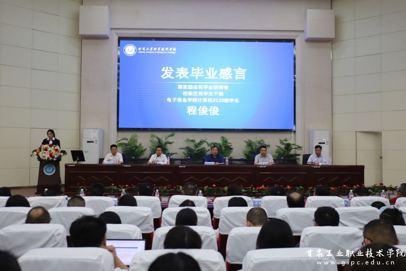 电子信息学院计算机2133班程俊俊同学代表全体毕业生发表了毕业感言,对母校领导和老师们三年来的谆谆教诲表示敬意与感恩,对自身三年来的成长进步表达感谢与幸福,对未来的职业之路充满期待与信心。