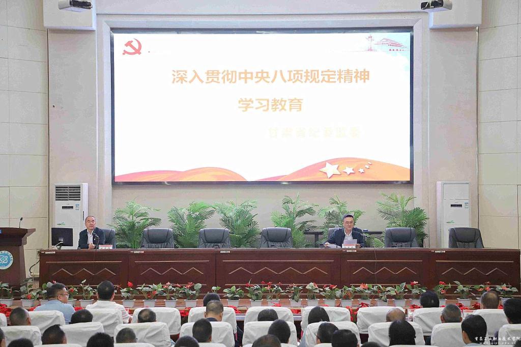 6月4日,学校在图书馆5楼报告厅举行深入贯彻中央八项规定精神学习教育专题警示教育大会。会议邀请省纪委监委一级巡视员陈中伟作专题辅导报告,党委书记坚葆林主持,在校党委班子成员、科级以上干部、全体党员参加。