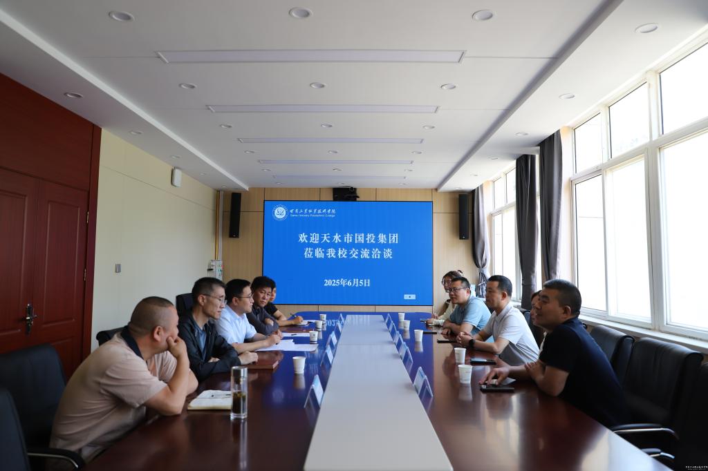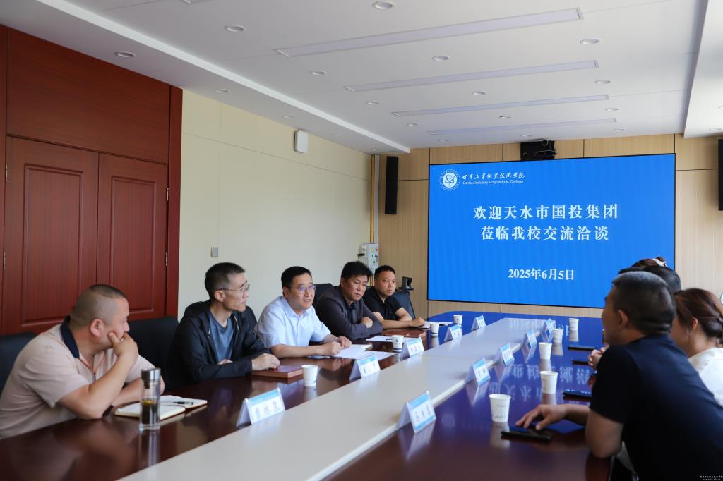 6月5日上午,天水市国投集团总经理杨海军一行来我校对接大宗食材集中配送有关事宜,旨在为全校师生提供安全、新鲜、营养的食材,共同筑牢校园食品安全防线。党委委员、副院长胡森林出席洽谈会,后勤管理处及国资处主要负责人参加。
