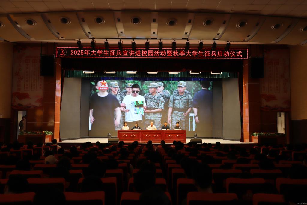 为积极响应国家征兵号召,鼓励青年学子投身军营、报效祖国,6月11日,我校在大学生活动中心举办2025年大学生征兵宣讲进校园活动暨下半年大学生征兵启动仪式。天水市麦积区人武部马亮、王佳怡,学工处(武装部)相关负责人、各二级学院党总支副书记、全体辅导员、2023级班主任及学生代表共计700余人参加活动。