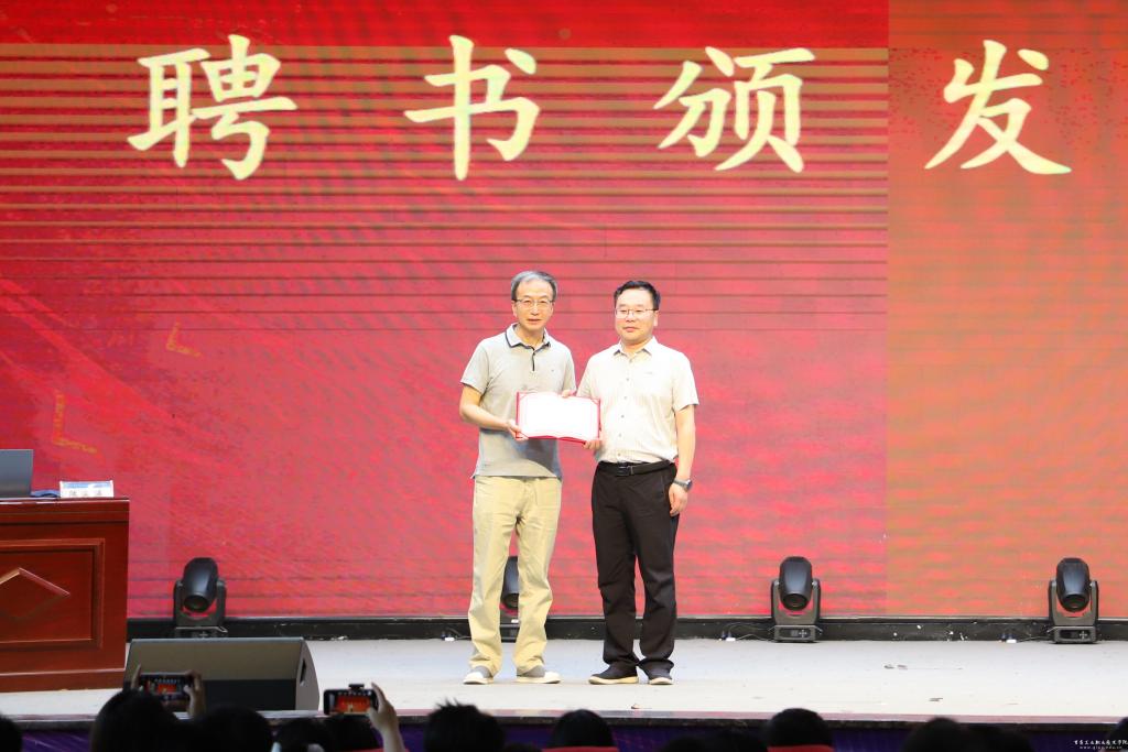 党委副书记文云代表学校向陈海涛颁发聘书,正式聘请其担任“天水市文旅康养市域产教联合体智库专家”及“甘肃工业职业技术学院旅游管理专业群建设委员会专家委员”。