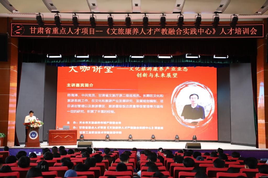正值2025(乙巳)年公祭中华人文始祖伏羲大典前夕,6月13日,由天水市文旅康养市域产教联合体主办,甘肃工业职业技术学院旅游学院及《文旅康养人才产教融合实践中心》项目组承办的“大咖讲堂”第二期在我校大学生活动中心开讲。本期讲堂特邀甘肃省文化和旅游厅原二级巡视员、资深文旅专家陈海涛作专题报告。