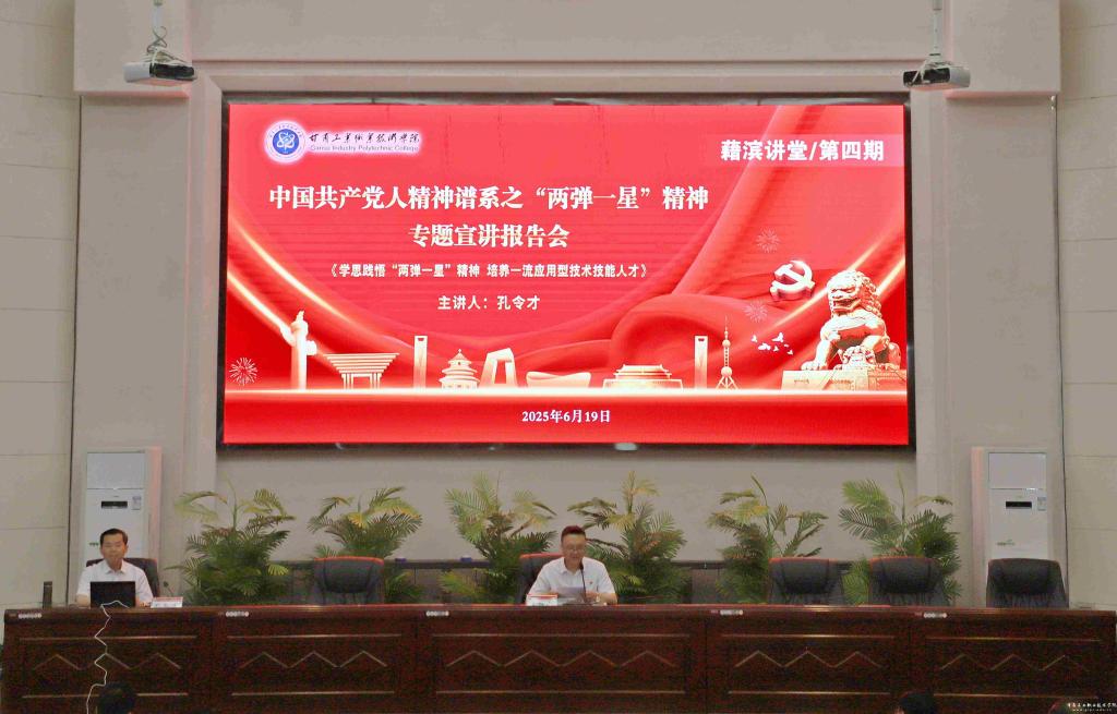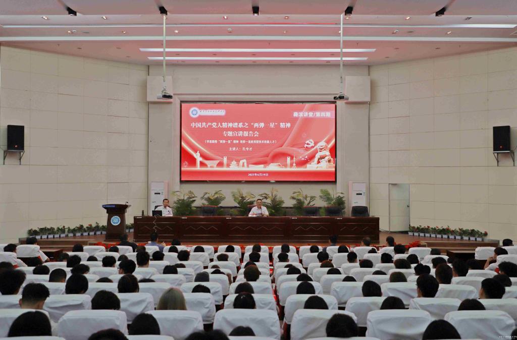 为传承红色基因,弘扬“两弹一星”精神,激励新时代青年学生勇担使命,6月19日,学校在图书馆五楼智敏报告厅举办中国共产党人精神谱系之“两弹一星”精神专题宣讲报告会(藉滨讲堂第四期)。本次报告会特邀马兰基地原政委、中国国史学会“两弹一星”历史研究会常务副理事长孔令才少将担任主讲嘉宾,为师生带来了一场深刻而富有感染力的宣讲。报告会由学校党委书记坚葆林主持,在校党委班子成员、相关部门负责人、思政教师、二级学院师生代表300余人聆听报告。