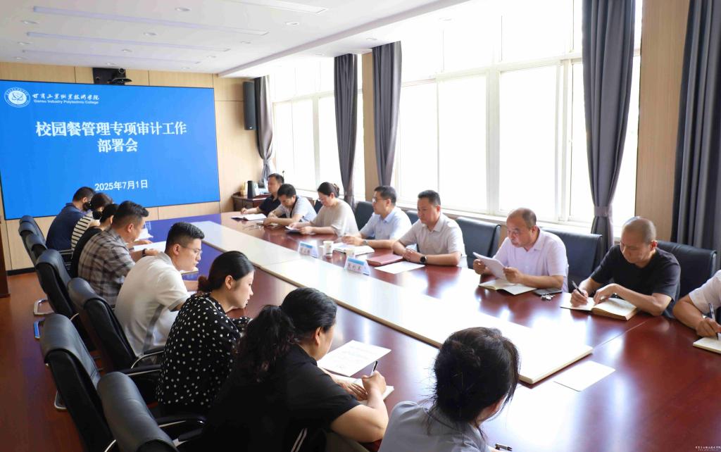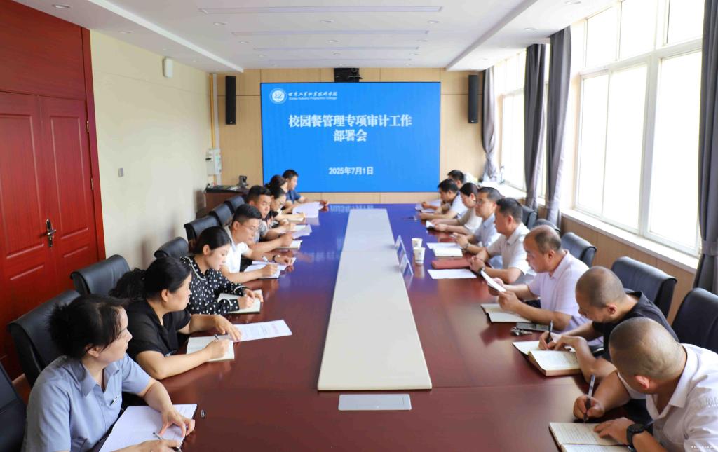为贯彻落实省教育厅有关文件精神,做好学校2025年“校园餐”管理专项审计工作,7月1日下午,学校在行政楼二楼会议室召开“校园餐”管理专项审计工作会议。党委副书记、院长张利军出席会议并讲话,副院长胡森林主持会议,审计处、纪检监察室、财务处、后勤处、各餐饮公司负责人及第三方审计公司相关人员参会。