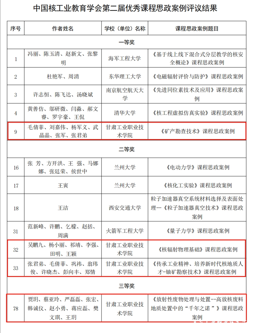 近日,中国核工业教育学会正式公布第二届涉核课程思政优秀教学案例评议结果。我校在此次评选中表现优异,共获得一等奖1项、二等奖2项、三等奖1项,并荣获“优秀组织奖”。