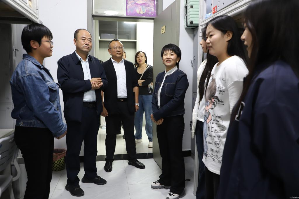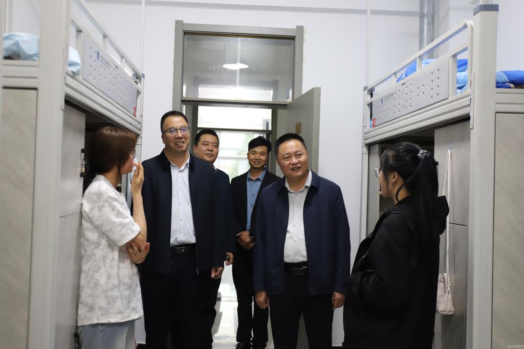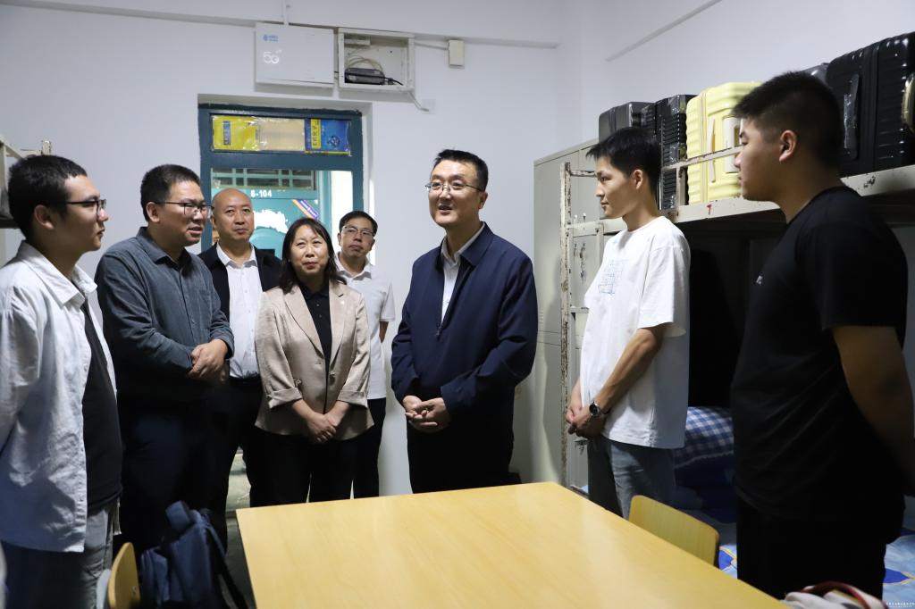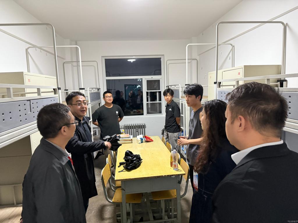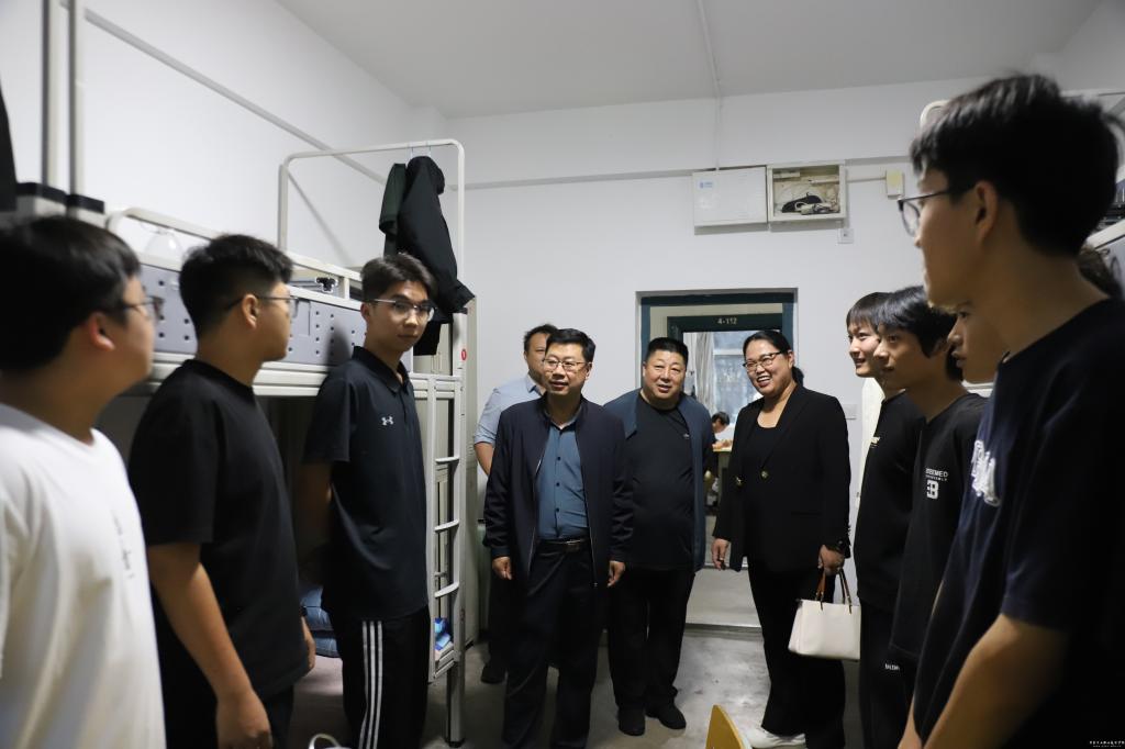 “同学们从哪里来?”“对学校的印象怎么样?”“住宿还习惯吗?”“食堂的饭菜合不合口味?”……每走进一间宿舍,校领导都与新生们进行亲切交谈,细致地询问大家初入大学的感受、家乡籍贯、专业选择以及到校后的生活情况,耐心倾听同学们的回答和想法。校领导们语重心长地叮嘱同学们,要尽快转变角色,熟悉校园环境,适应大学的学习和生活节奏,与来自五湖四海的室友和睦相处、互帮互助,共同营造温馨和谐、积极向上的宿舍文化氛围。
