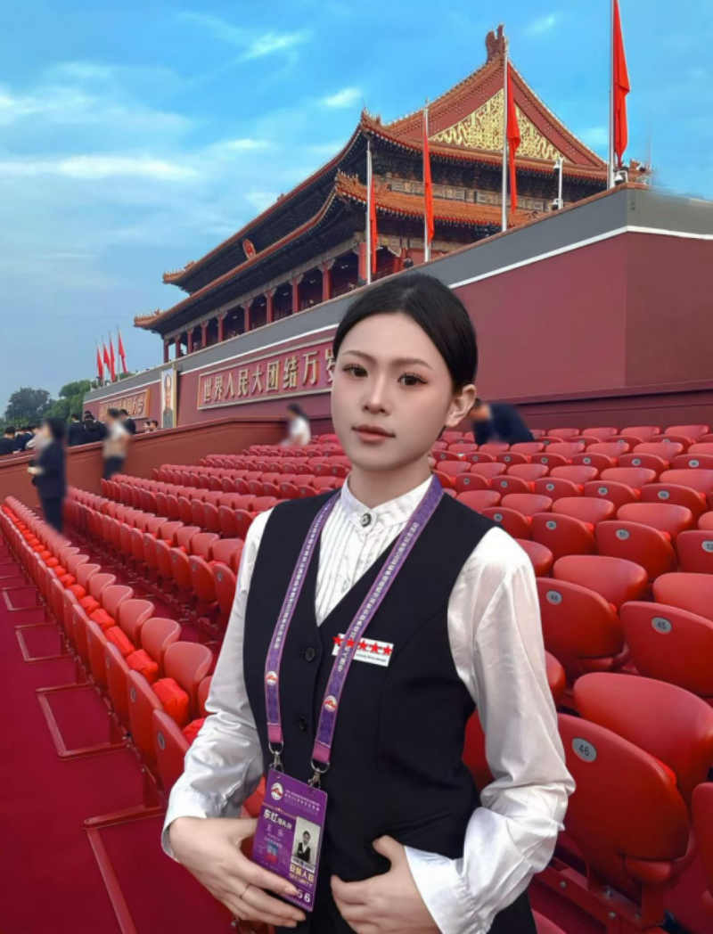 在阅兵礼仪安保人员的遴选中,王乐以扎实的专业基础、优雅的仪态举止和过硬的政治素质脱颖而出,最终承担起观礼台这一重要岗位的安保任务,为国家盛典保驾护航。