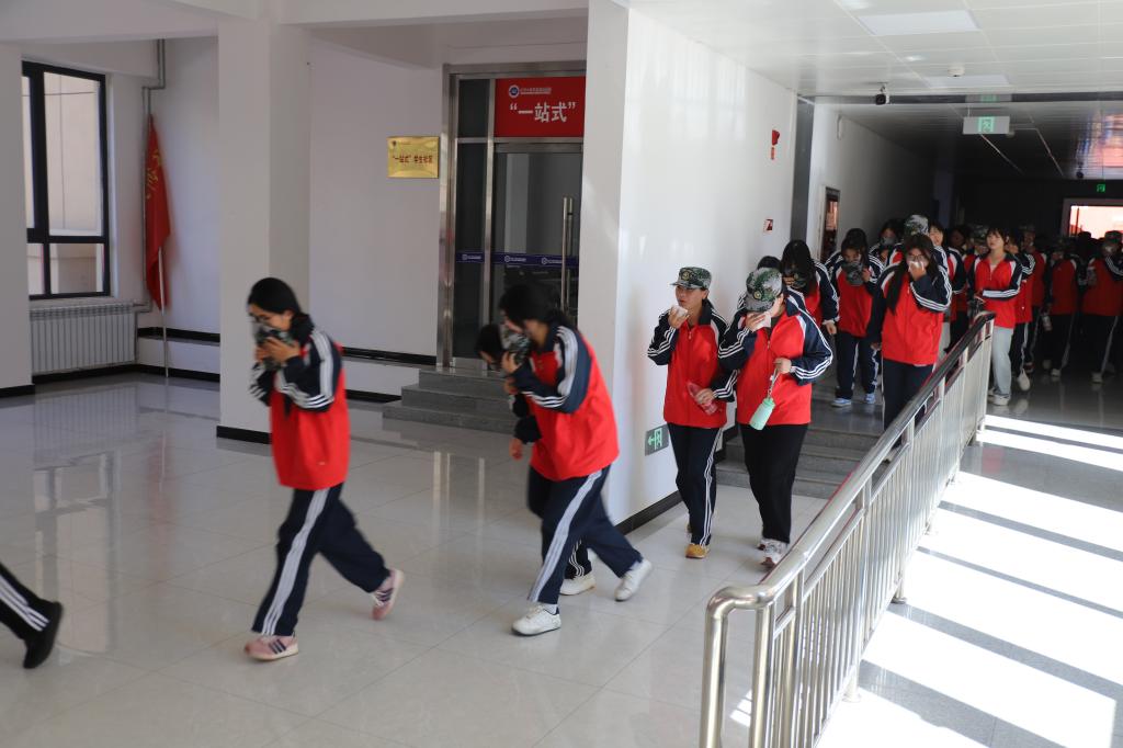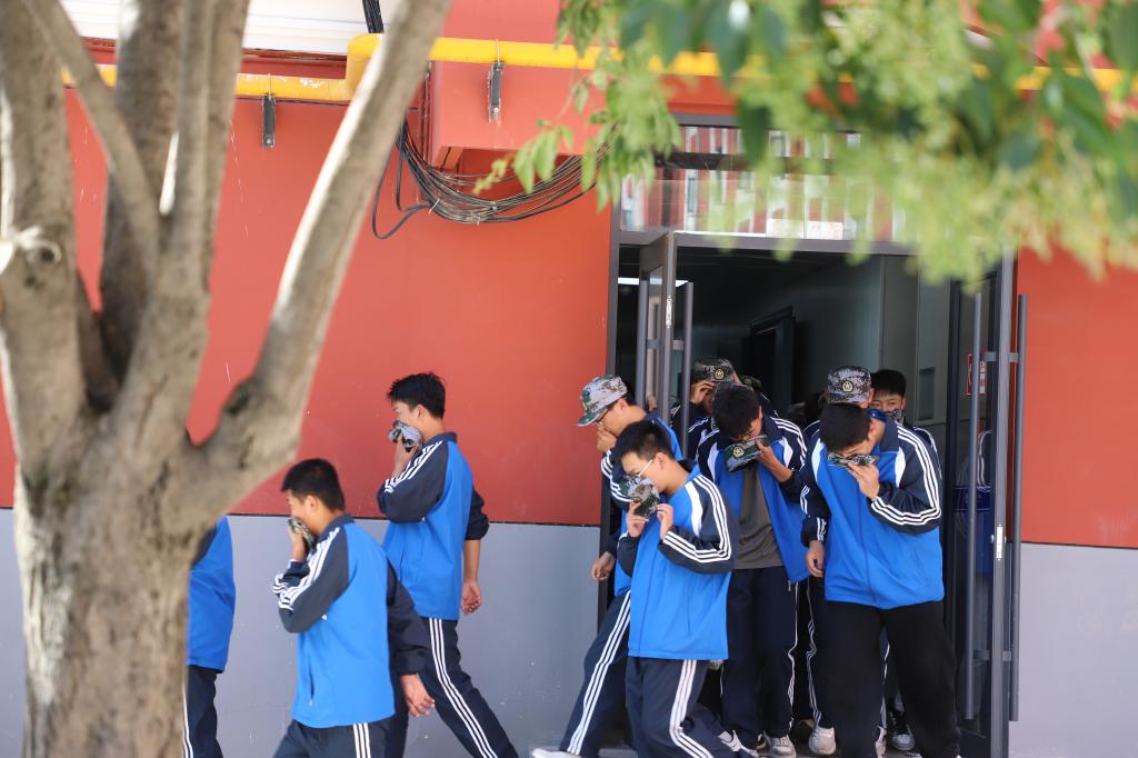 14时30分,随着模拟火警信号响起,演练正式拉开序幕。师生们迅速进入应急状态,以湿毛巾捂住口鼻,弯腰低姿,在辅导员、宿管及校卫队的引导下,沿预定路线快速有序撤离至操场安全区域。抵达安全区域后,各班级迅速清点人数并向总指挥报告,整个疏散过程紧张有序,高效完成了既定目标。