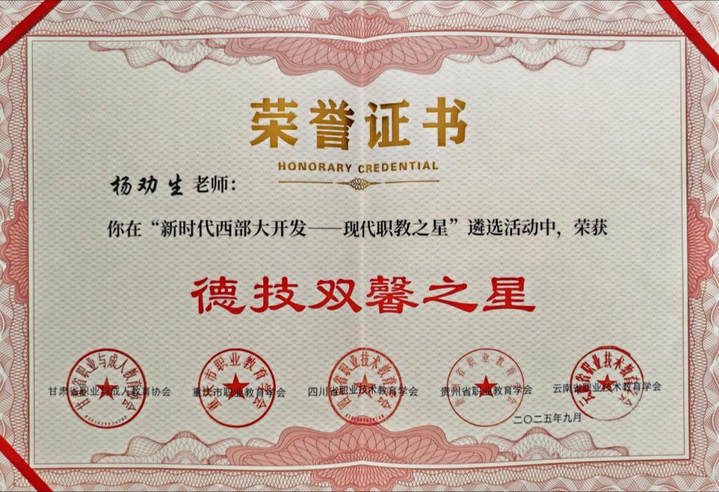 大会表彰了荣获“新时代西部大开发——现代职教之星”的单位、个人及“产教融合典型案例”,集中展示近年来西部五省市在职业教育高质量协同发展中的办学育人成果。我校荣获“创新发展之星职业院校”荣誉,旅游学院李玉林团队撰写的《产教融合赋能区域发展:天水文旅康养联合体建设典型案例》获评“优秀案例”,化工学院教师杨劝生获评“德技双馨之星”荣誉称号。