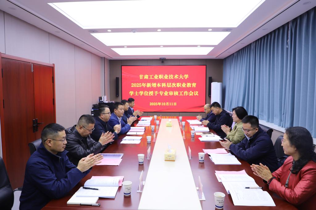 10月11日,由省教育厅学位管理与研究生教育处处长姜言卿带队,甘肃林业职业技术大学副校长罗广元为组长的学士学位授权审核专家组一行9人来我校开展本科层次职业教育学士学位授予单位和授予专业实地考察和评审。学校党委副书记、校长张利军,副校长周晓明、张庆华出席。党委副书记刘乃君主持评审会议。