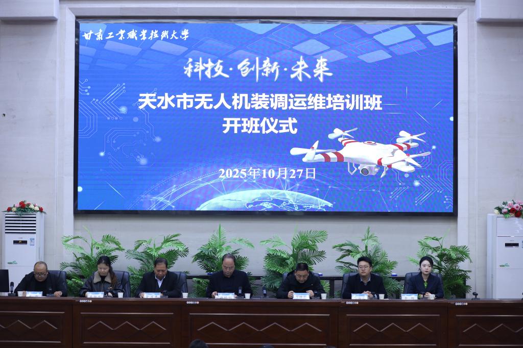 10月27日,甘肃工业职业技术大学举行天水市无人机装调运维培训班开班仪式。学校副校长周晓明,天水市工业和信息化局二级调研员何世龄,天水市教育局职成教科科长耿万孝出席,继续教育学院以及智能制造学院班子成员、教师代表和来自甘肃二一九地质大队、奥拓地理信息技术有限公司等单位的180余名学员参加。