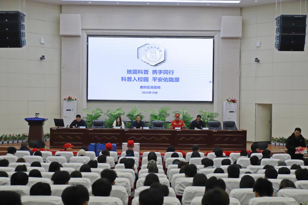 活动伊始,刘向东结合自身多年从事地震监测与应急管理工作的实践经验,围绕近期地震形势、防震减灾的重要性、“防”与“救”的核心知识以及学校安全教育职责等方面,进行了深入浅出的阐释。随后,黄艳通过图文并茂地展示及真实案例剖析,开展了一场生动且富有趣味的地震科普知识讲座。学生们“走进”地震科学的殿堂,不仅了解了地震成因、预警机制等基础知识,更增强了科学应对灾害的信心。