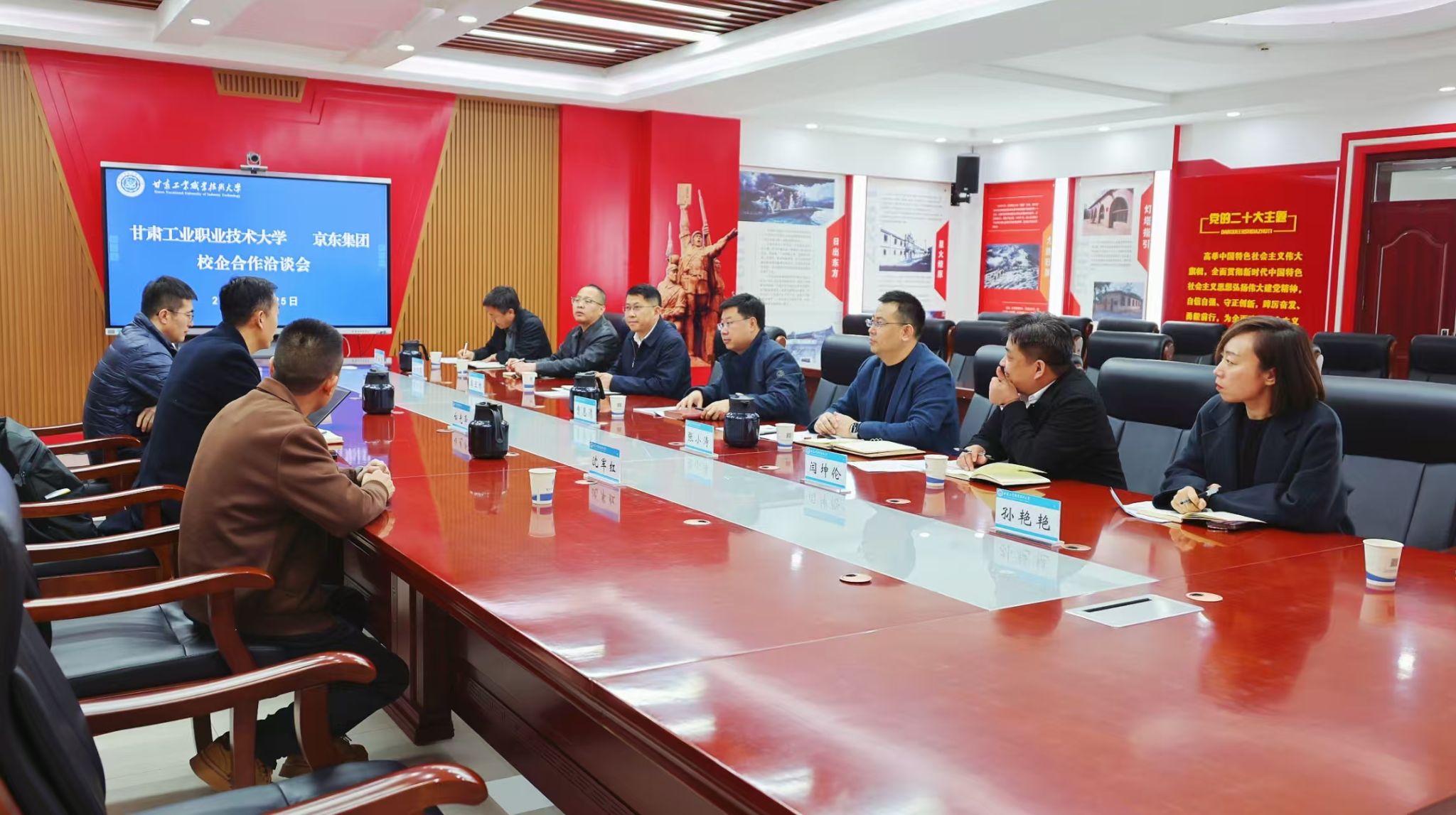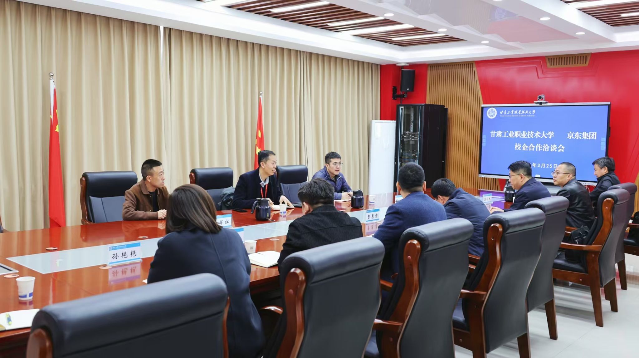 3月25日,京东集团西北区校企合作总负责人白光泽一行来校洽谈校企合作事宜。学校副校长曹惠清出席,产教融合办公室负责人、财经商贸学院班子成员参加。