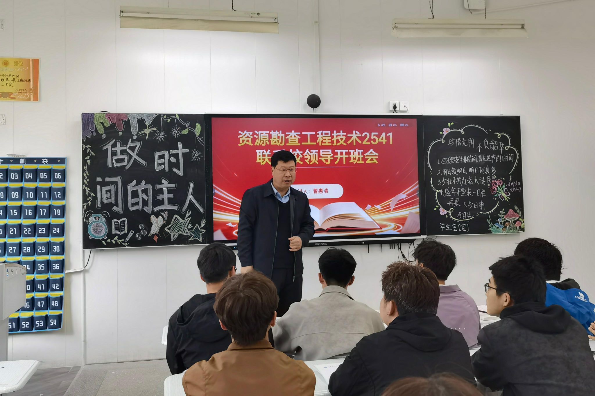 在资源勘查工程技术2541班主题班会上,曹惠清结合专业特点,向同学们普及安全防范知识,鼓励大家树立远大理想,将个人成长与国家发展、行业需求紧密结合,珍惜大学时光,筑牢安全防线,为未来投身地质事业打下坚实基础。