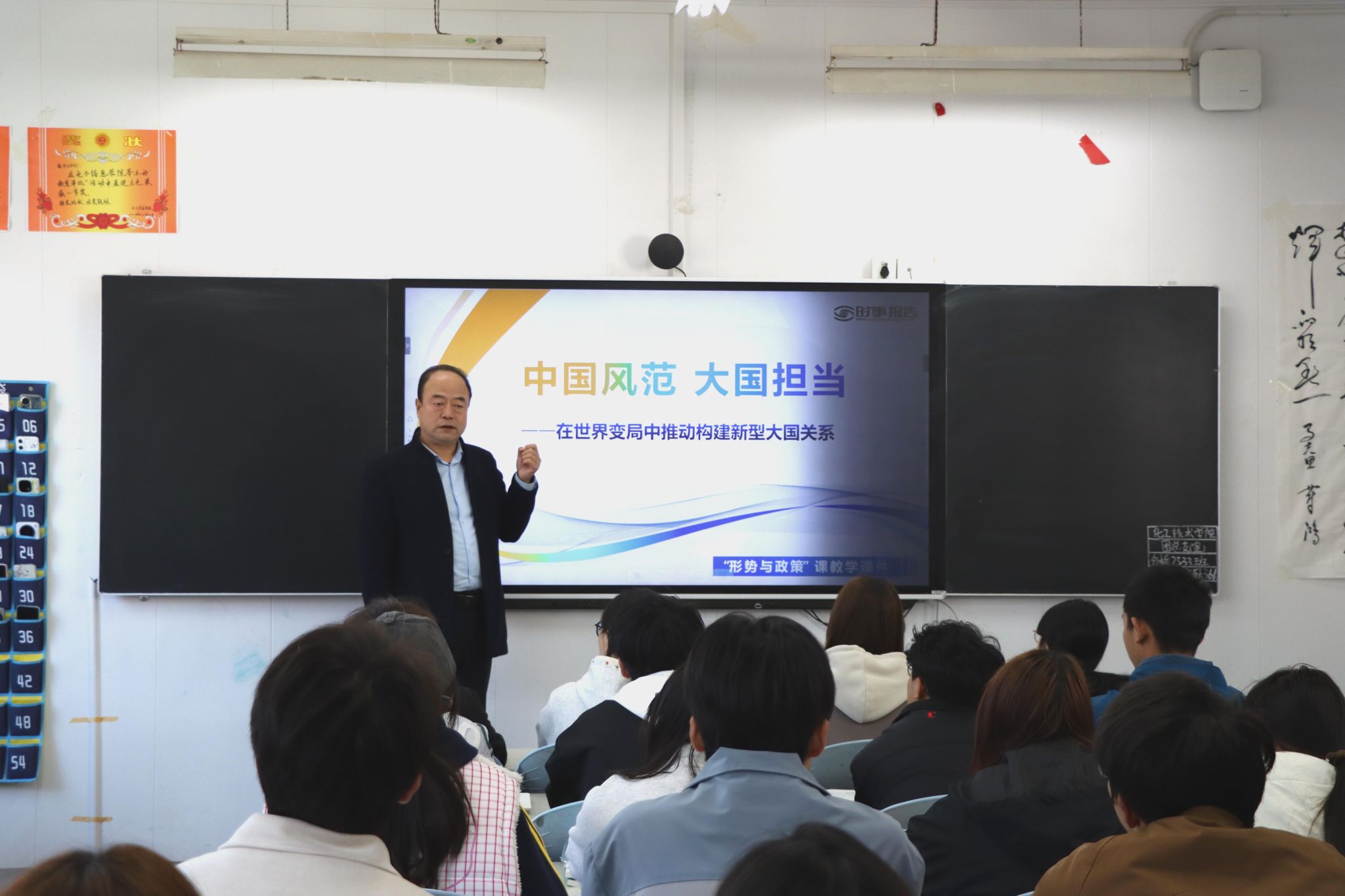4月1日,副校长周晓明走进分析2531班,以“中国风范 大国担当——在世界变局中推动构建新型大国关系”为题,为同学们讲授形势与政策课。