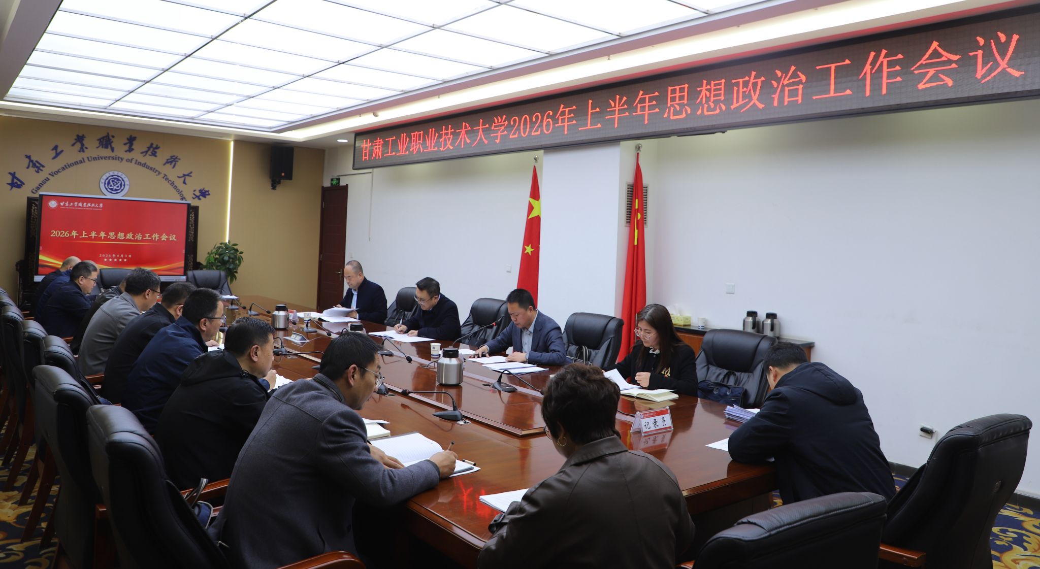4月3日,学校召开2026年上半年思想政治工作会。党委书记坚葆林,副校长周晓明、张庆华出席。会议由党委副书记、校长张利军主持。