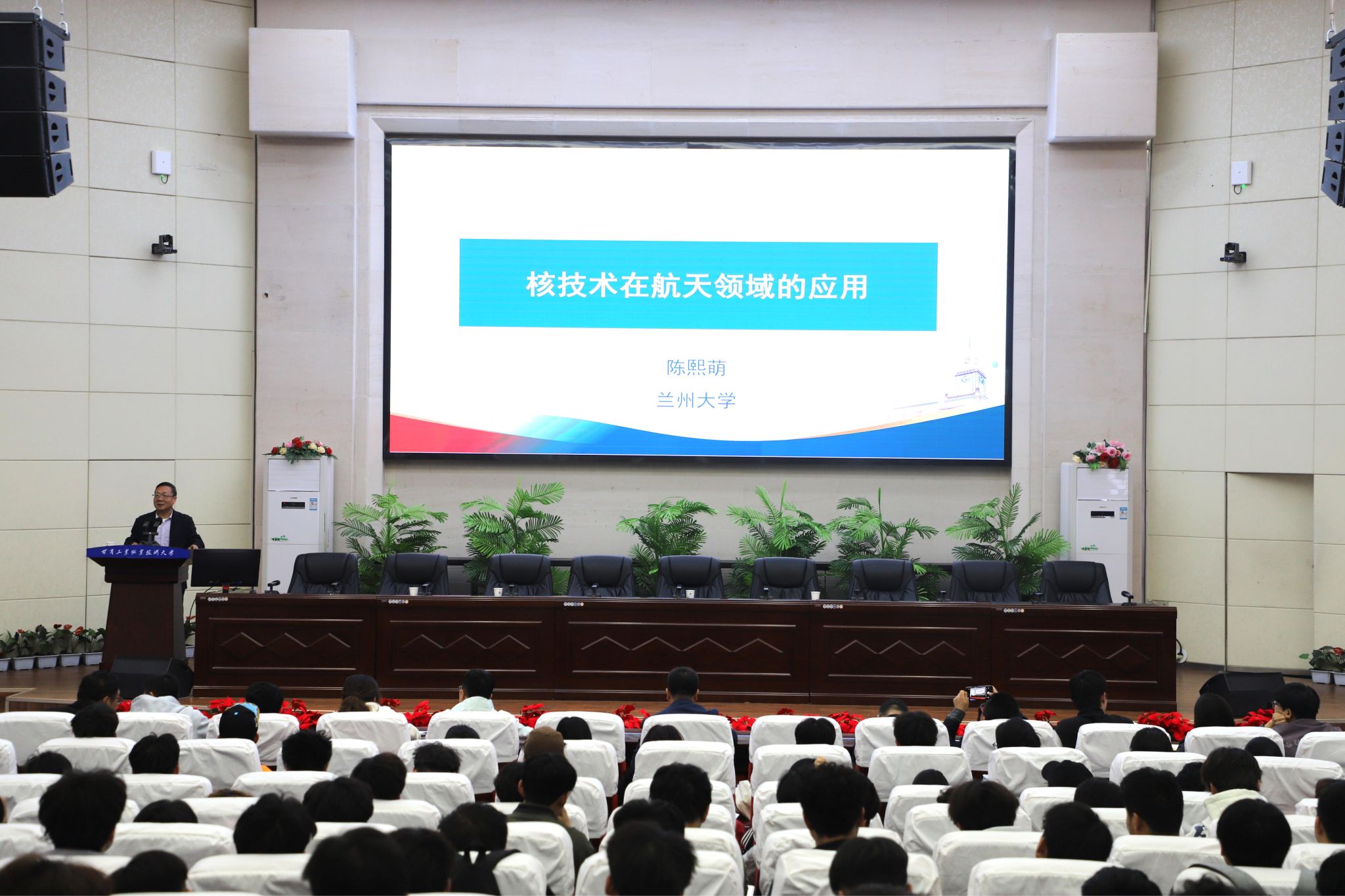 4月8日,学校“藉滨讲堂”第三期在图书馆智敏报告厅举行。兰州大学陈熙萌教授应邀作题为《核技术在航天领域的应用》的专题报告,师生代表300余人参加报告会。