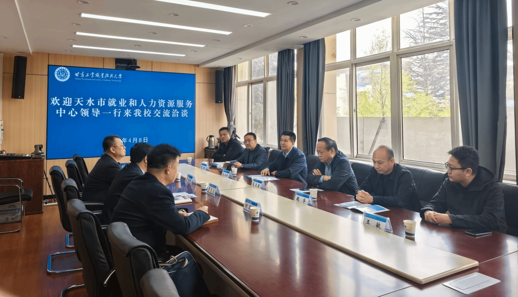 4月8日,天水市就业和人力资源服务中心主任聂卫东一行来我校交流座谈。副校长曹惠清出席座谈会,招就处负责人参加。
