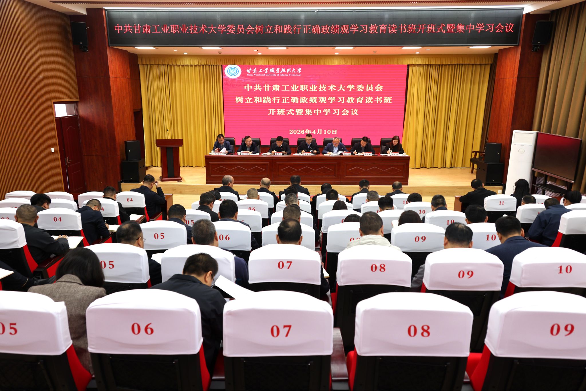 4月10日上午,学校树立和践行正确政绩观学习教育读书班开班式暨集中学习会在行政楼6楼会议室举行。党委书记坚葆林主持会议并讲话。校党委班子成员、各基层党委书记、各部门主要负责同志参加。