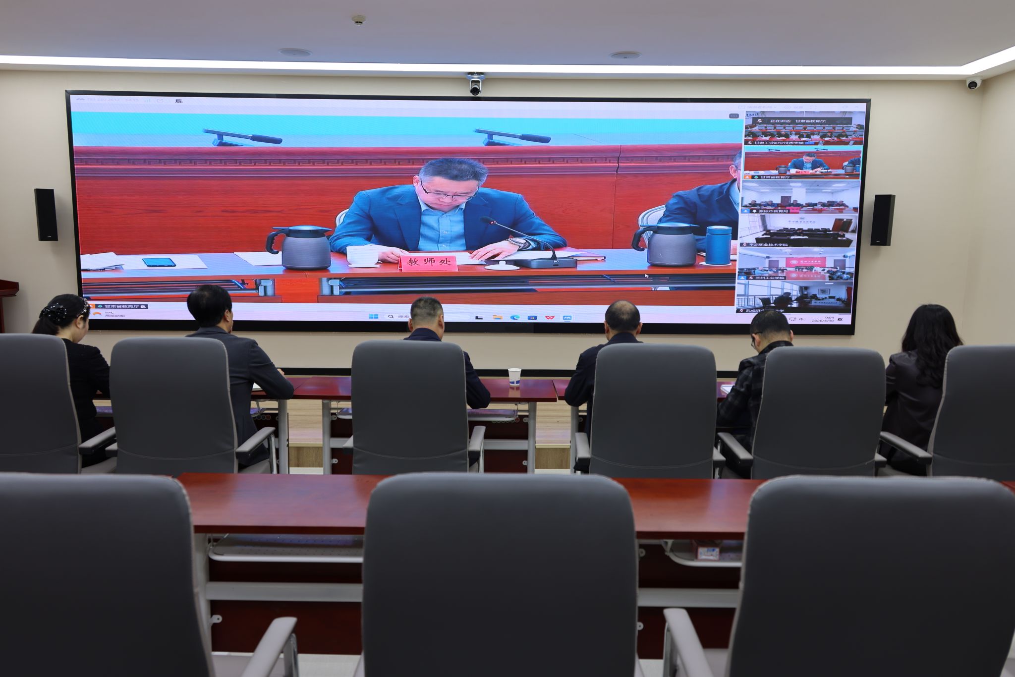 4月10日上午,省教育厅召开2026年全省教师培训工作网络视频会。副校长张德龙及有关部门负责人在校内分会场参会。