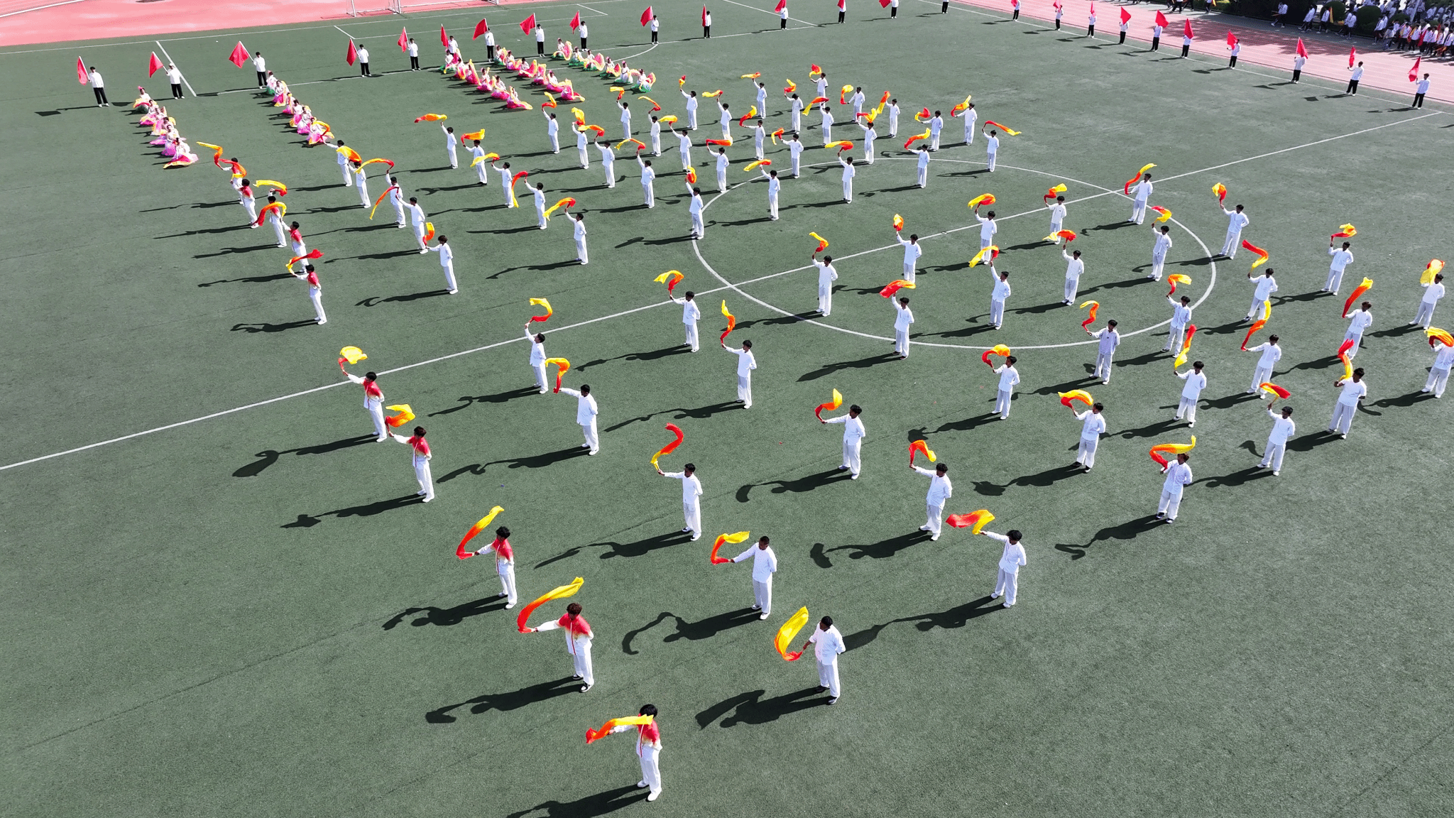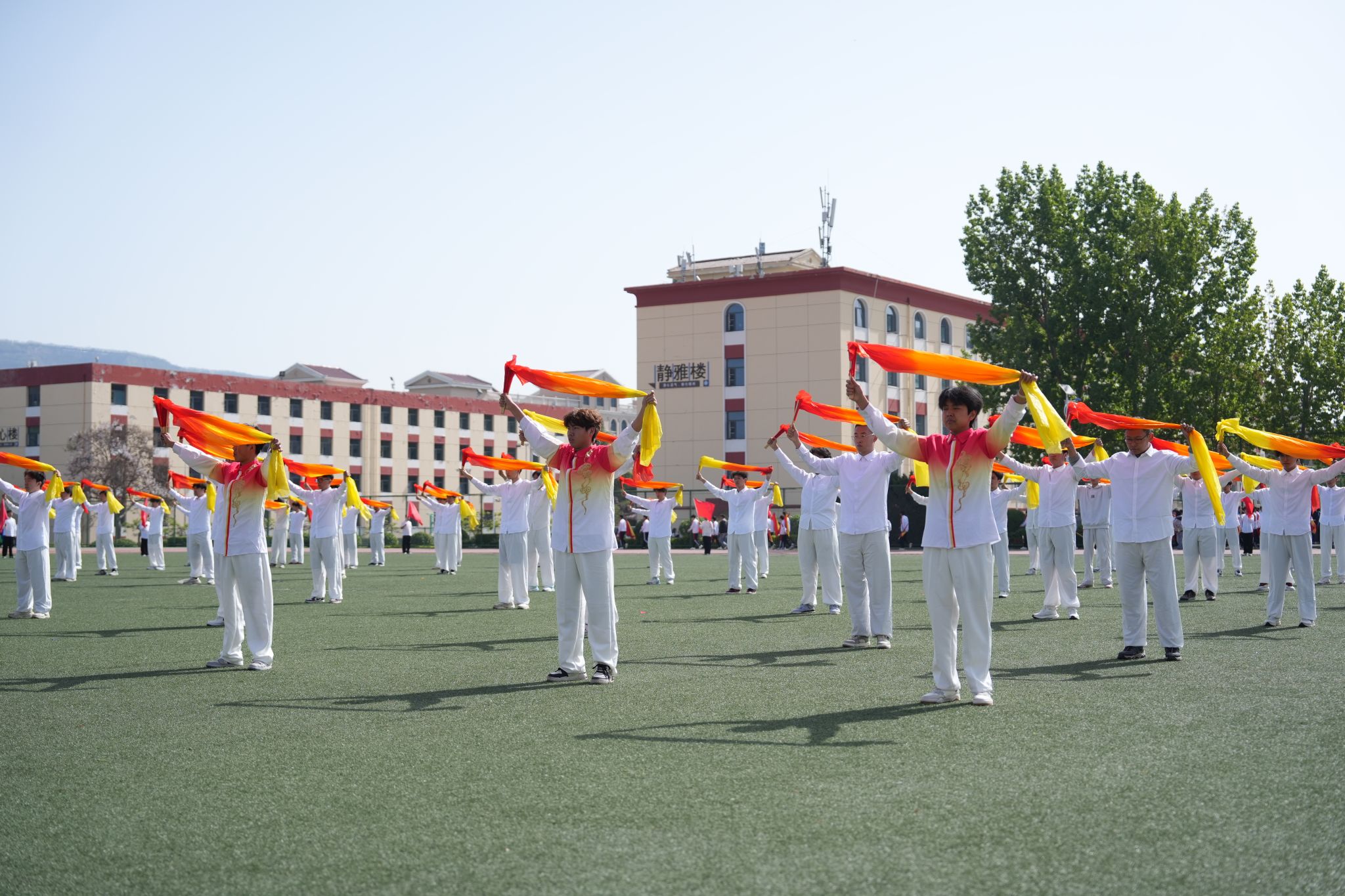 上午9时,开幕式正式开始。国旗护卫队队员身着整齐制服,迈着铿锵有力的步伐入场。在雄壮的《义勇军进行曲》中,五星红旗冉冉升起,全体师生庄严肃立,面向国旗行注目礼。