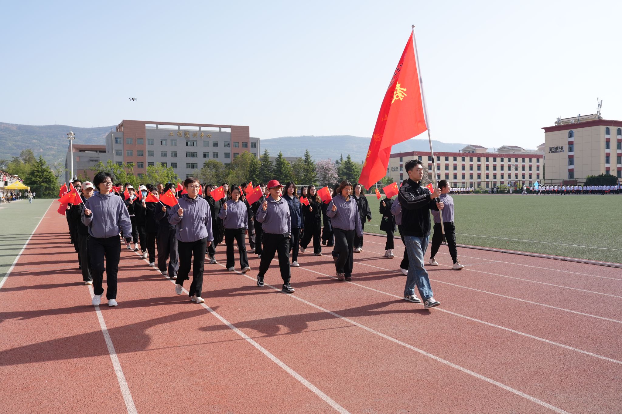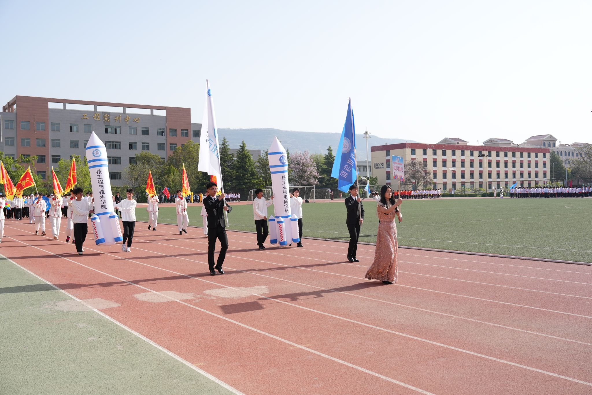接着,伴随着激昂的《运动员进行曲》,各方阵代表队依次入场,大家精神抖擞、口号嘹亮,尽显专业特色与青春朝气。
