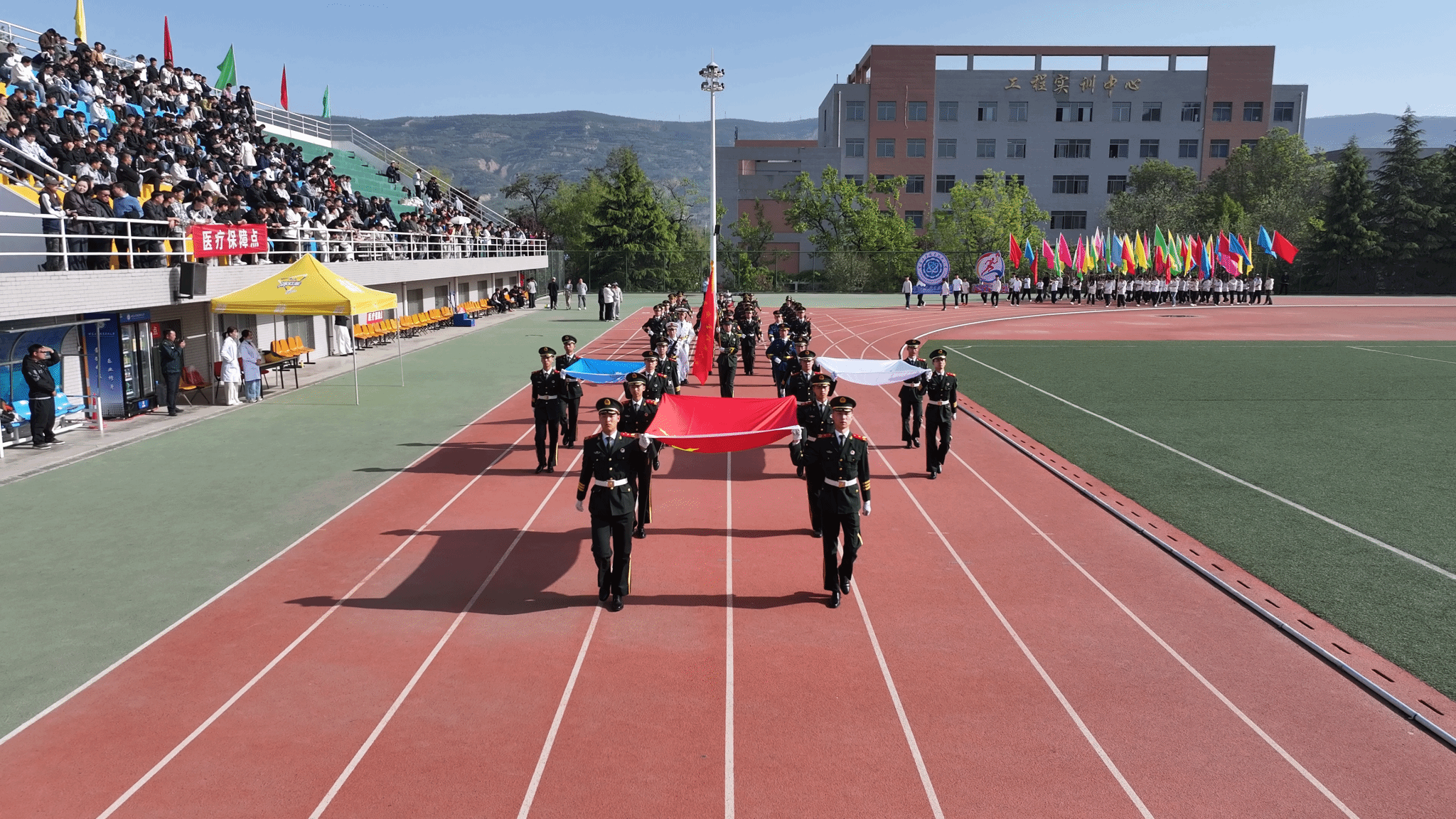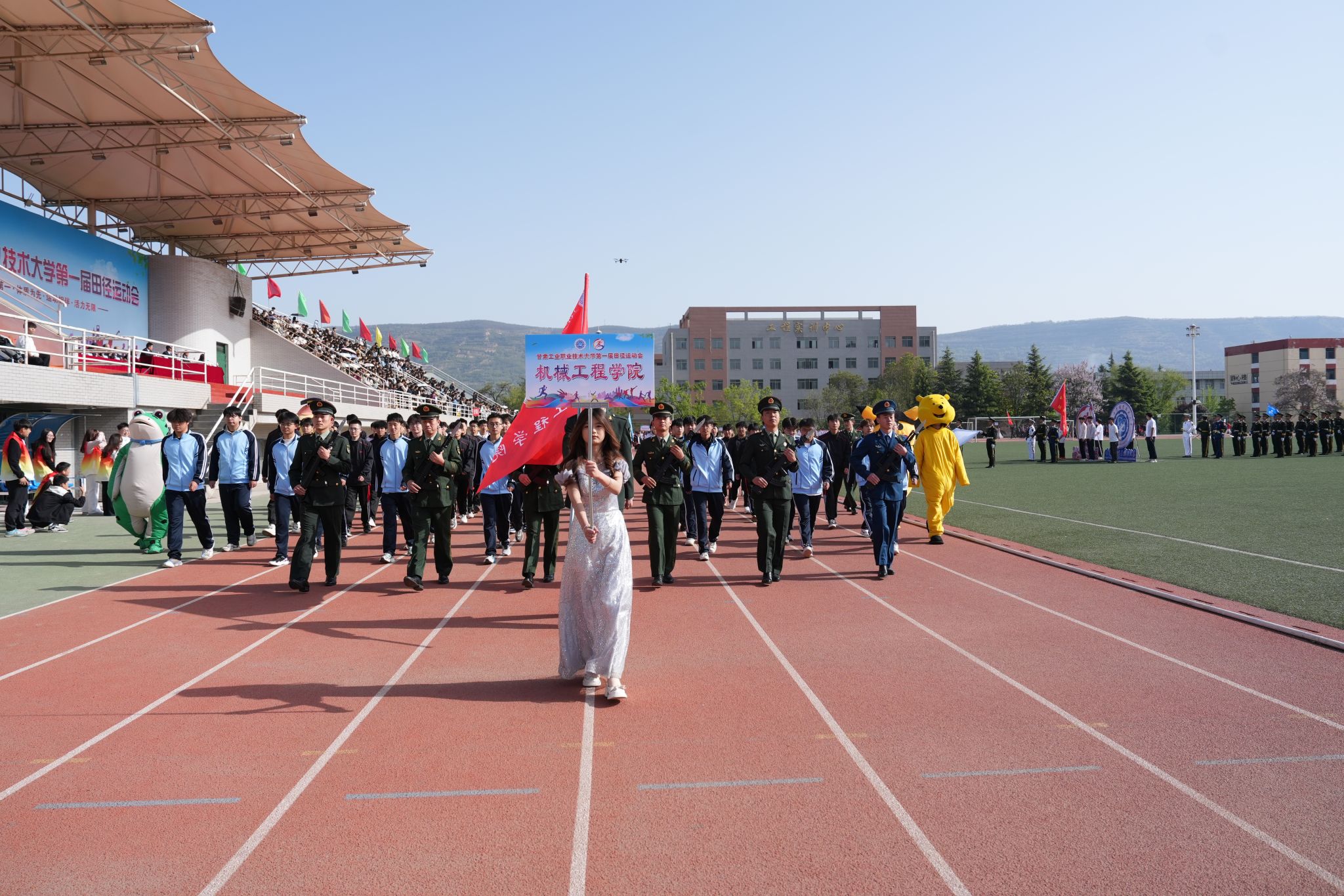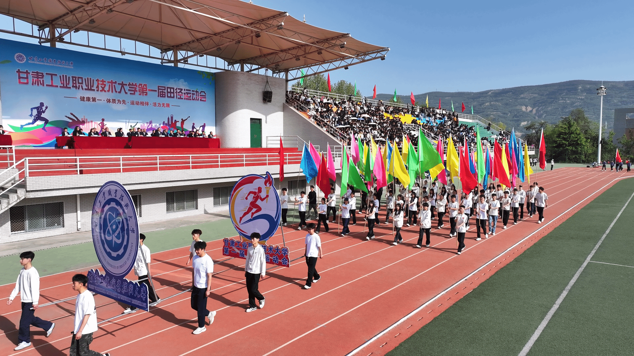 春风和煦,生机盎然。4月23日,甘肃工业职业技术大学第一届田径运动会举行。学校领导坚葆林、张利军、贾昌麟出席开幕式。全体师生齐聚绿茵场,以昂扬的姿态、饱满的热情,共赴这场体育盛会。开幕式由副校长张庆华主持。