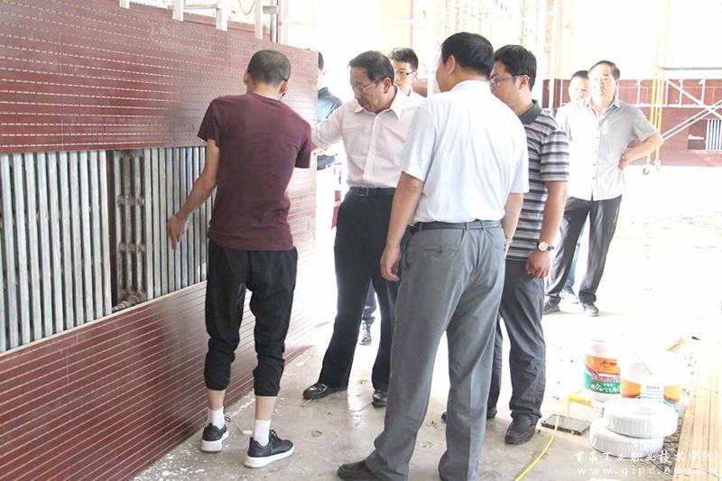 杨声书记一行从学生公寓前后路面硬化、大学生活动中心改造、新建餐饮中心、二号教学楼中心雕塑构建等处全面察看了校庆举办各类活动和来宾需要参观的场所。在现场听取了相关负责人关于校庆准备工作情况和施工方负责人有关工程进展情况汇报后,对检查中发现的问题提出了具体的指导意见,并要求分管领导和相关部门克服困难,加班加点,争取在9月初保质保量完成各项工作。