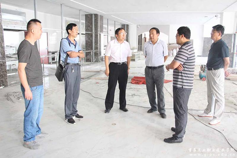 8月9日上午,杨声书记在党委副书记郭建忠、副校长李玉生的陪同下,带领组织人事部、学校办公室、宣传统战部和校友联络办公室负责同志对校庆校园环境等各项准备工作进行了实地察看。