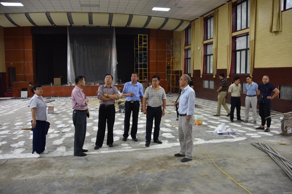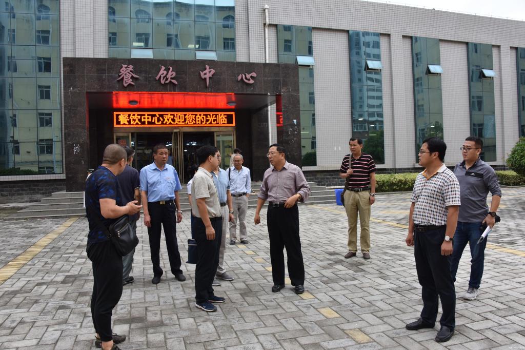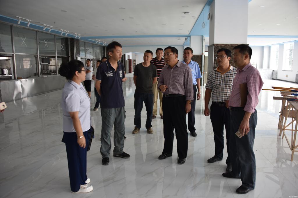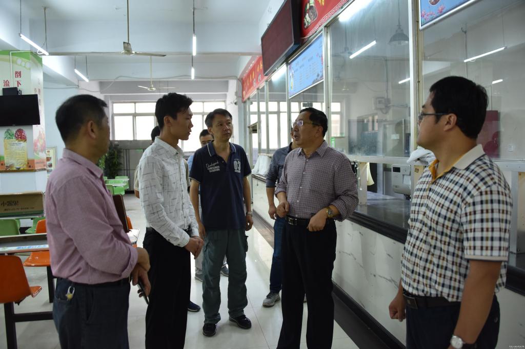 8月24日上午,校党委书记杨声带领校办公室、宣传部、学工处、保卫处、国资后勤处及餐饮中心、物业公司等部门负责人,检查了学校开学各项工作的准备情况。