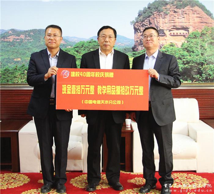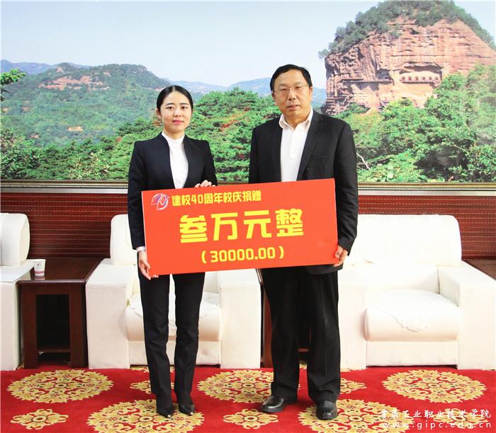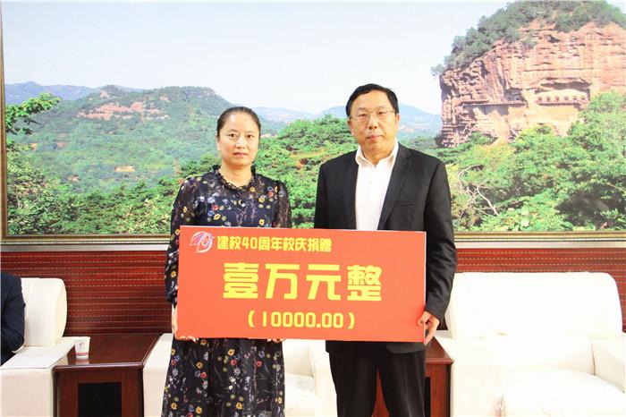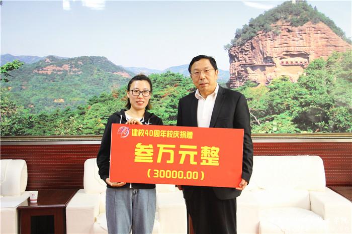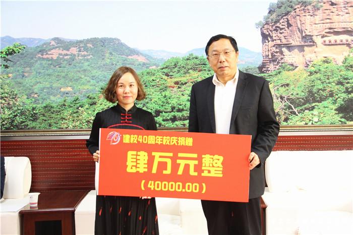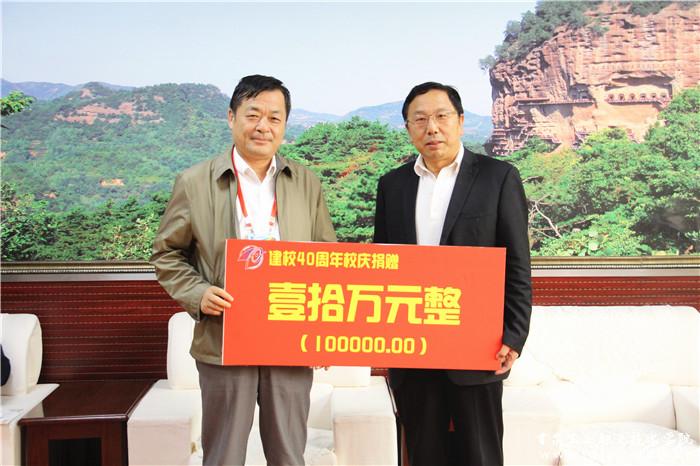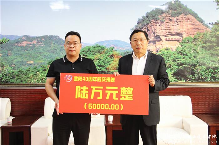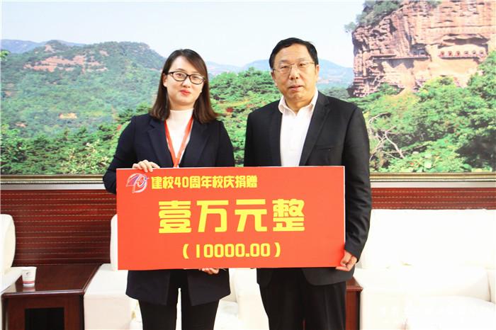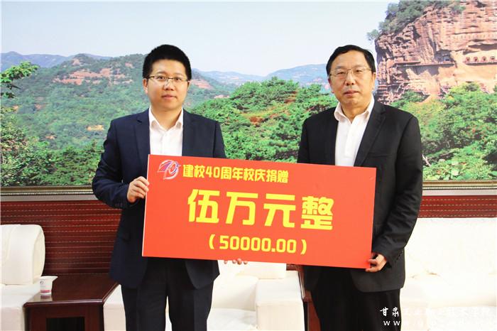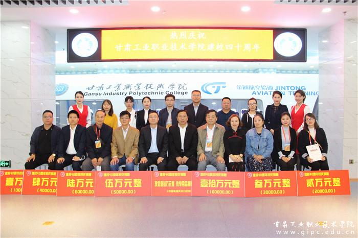 有来自北京广惠金通教育科技有限公司、中国电信天水分公司、山东蓝海股份有限公司、福建申远新材料有限公司、新疆宜化化工有限公司、乌兰察布市博源蓝海御华大饭店有限公司、鄂尔多斯市乌兰集团乌兰国际大酒店、新疆发展宏业能源科技有限公司、中化岩土集团股份有限公司、谦诚桩工科技股份有限公司、浙江明康工程咨询有限公司、天津市和平区劲松护养院、甘肃喜海国际旅游社有限公司等多家企业和优秀校友赵贵宝向学校捐赠。