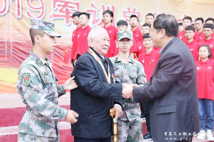 校党委书记杨声为贾德旺老战士佩戴庆祝中华人民共和国成立70周年纪念章。贾德旺是建国前参加革命的老战士,曾参加过解放战争和抗美援朝,荣获三等功一次、全军嘉奖一次。