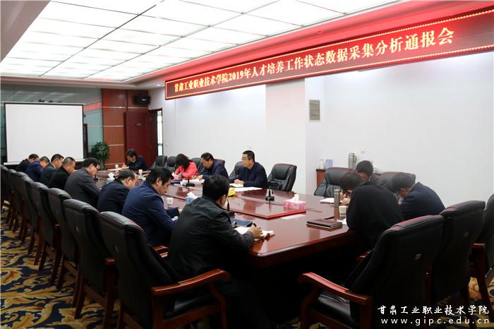 10月9日下午,甘肃工业职业技术学院在图书馆4楼会议室召开2019年人才培养工作状态数据采集分析通报会。副校长李玉生,各部门、各二级学院负责人参加。曹爱明校长主持会议。