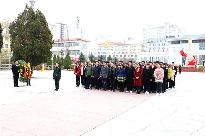 师生们到达会宁红军会师纪念馆后。在会师纪念塔下,全体师生举行悼念烈士、敬献花篮仪式。仰望会师塔,全体师生感受到了红军长征的艰辛与不易,体会到了革命先烈不畏艰难、众志成城和敢于奉献、不怕牺牲的革命精神。